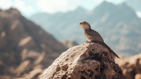 Rock Agama Lizard Basking Under the Desert Sun on a Stone in Arid Habitat