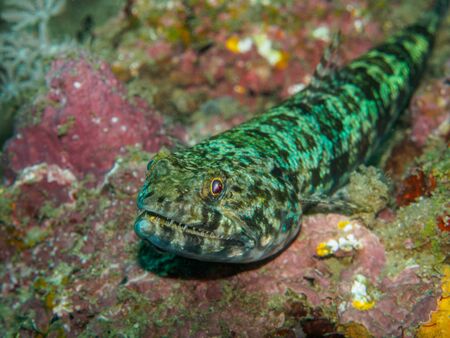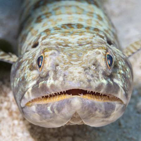 Front Close-up of a Lizardfish on the Bottom. Anilao, Philippines