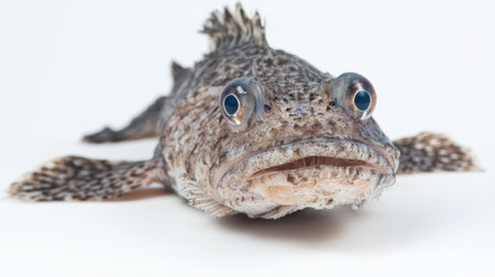 Monkfish Lophius piscatorius is displayed against a pristine white background showcasing its distinct appearance and textures emphasizing its remarkable adaptations for survival.