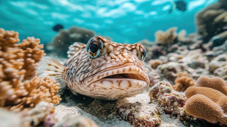 A young sarcastic fringe head sitting on the ocean floor on the look out for it's next meal