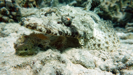 Tentacled flathead Papilloculiceps longiceps portrait close-up, Red Sea, Egypt