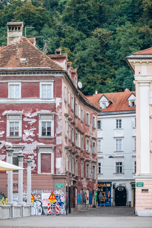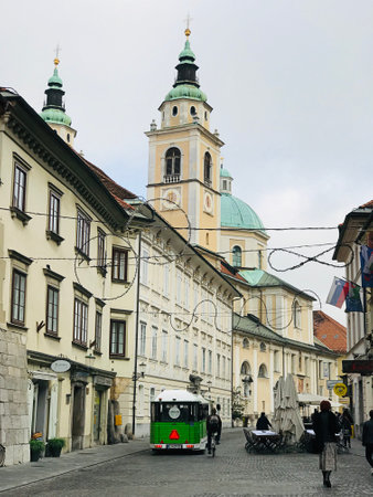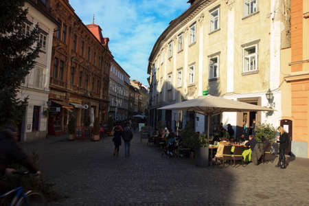 LJUBLJANA, SLOVENIA - OCTOBER, 2019: Old streets of historical center of Ljubljana city
