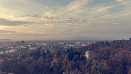 Autumn Ljubljana at sunset. Photo from a height.