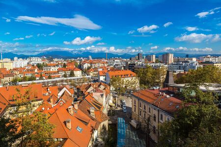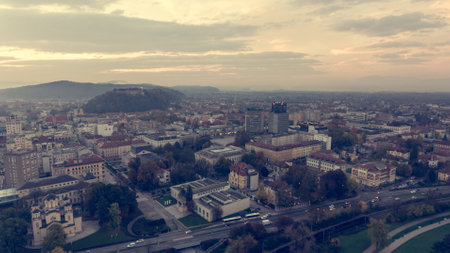 LJUBLJANA, SLOVENIA - OCTOBER 12: Aerial Shot of Ljubljana on OCTOBER 12, 2014. Downtown Architecture at Sunny Day in Ljubljana, Slovenia.