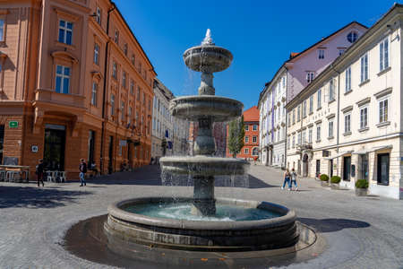 09.08.2021: Ljubljana, Slovenia: Ljubljana Fountain on Novi trg square