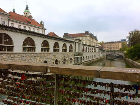 The Cobblers' Bridge in the old town Ljubljana, Slovenia