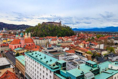 The city of Ljubljana in central Slovenia viewed from Castle Hill