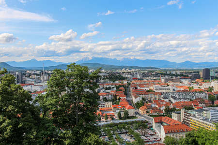 LJUBLJANA, SLOVENIA - JUNE 11, 2014: Aerial view of Ljubljana in Slovenia in a summer day