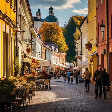 Embark on a journey through Vilnius, Lithuania's cultural haven, with this captivating image of a bustling cobblestone street in the city's Old Town. Adorned with colorful flags and filled with the energy of locals and tourists alike, this enchanting scene showcases Vilnius' historic architecture, vibrant atmosphere, and enchanting festivals. The image invites viewers to immerse themselves in the city's rich cultural tapestry, evoking a sense of curiosity and adventure. Discover the unique charm of Vilnius and be inspired to explore all that this captivating city has to offer.