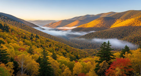 Autumn landscape with fog in the Carpathian mountains, Ukraine
