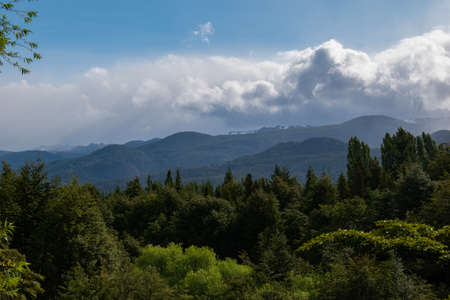 Mountain ridge and beautiful scenery with clouds
