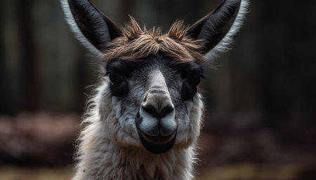 Llama in a dark forest. Conceptual image of wild animals.