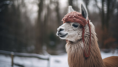 Cute alpaca in knit hat enjoys winter snow generated by artificial intelligence generated by artificial intelligence