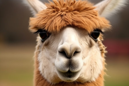 A closeup shot of looking brown llama face