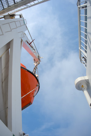 Details of Life boat and enclosed life boat davit is modern merchant navy vessel