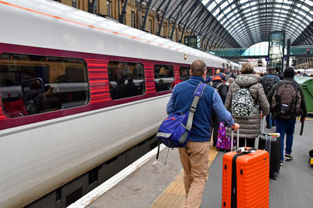 Passengers hurry along a platform in a London train station so they can board the train to get them to their next destination.