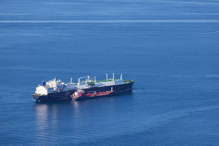 A LNG tanker and a chemical products tanker tied together in the bay of Gibraltar