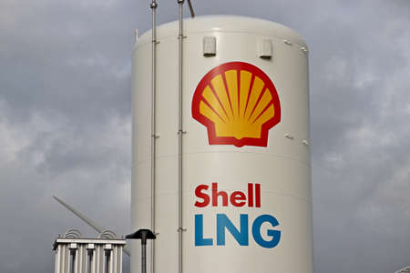 Tanks at the Shell petrol station at Doelwijk in Waddinxveen where Liquid Natural Gas, natural gas, for trucks is sold in addition to diesel oil