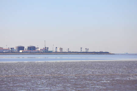 Caofeidian, China - November 9, 2020: Prospect of artificial island 1 in Hebei Tangshan, Hebei Province, China