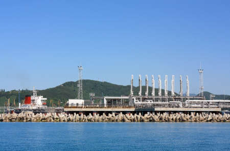 View of an oil pipeline and a dock for oil tankers.