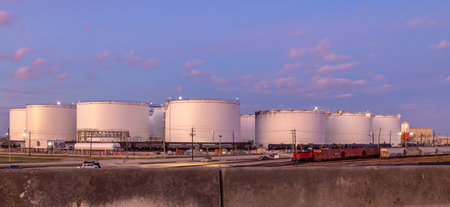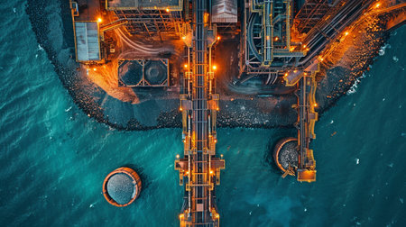 High Altitude Vantage Point Showcases Sophisticated Oil Transfer Operations at Industrial Complex