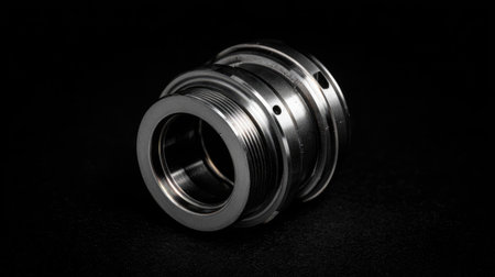 A close-up view of a precision engineering component, showcasing intricate metal textures and detailing, ideal for industrial and manufacturing contexts.