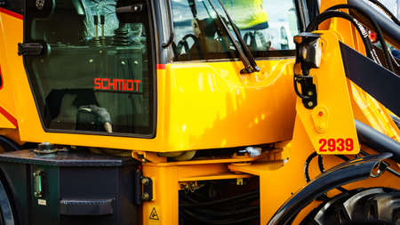 Bednary near Poznan, Poland - September 20, 2019: Agroshow in Poland. Schmidt brand machine, wheel loader.