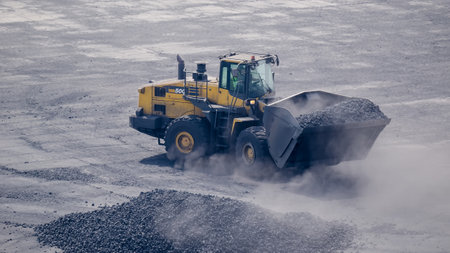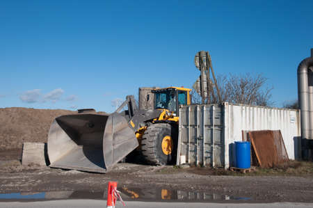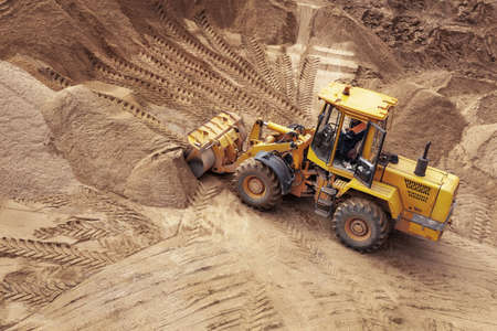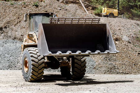 WHEEL LOADER - A machine working in the yard with minerals