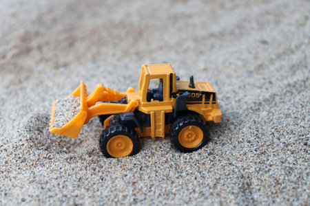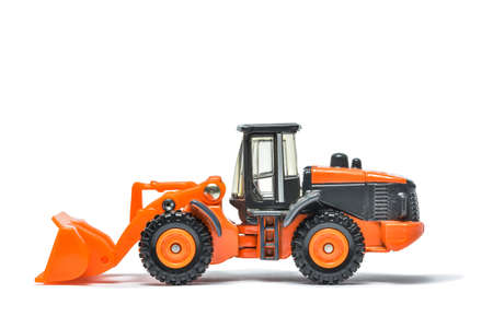 Bucket loader Toy Car on White Background, orange model car isolated