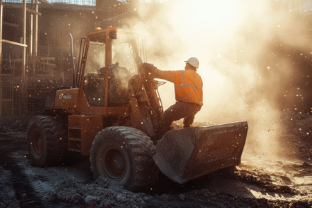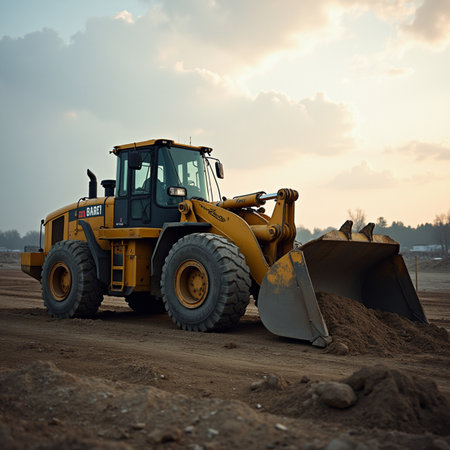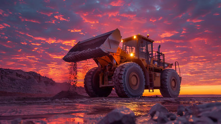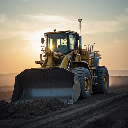 The Evocative Scene of a Bulldozer Operating Under the Fading Evening Light