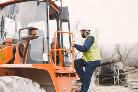 work near quarry in village of trooz in the belgian ardennes near liege on sunny summer day