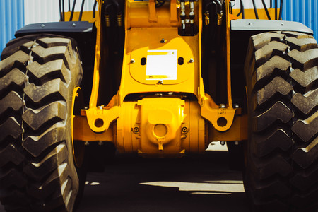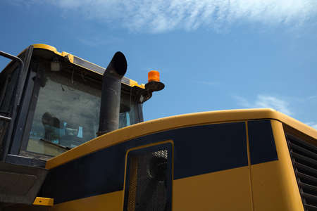 Low angle shoot of a small tractor or escavator. Industrial concept.