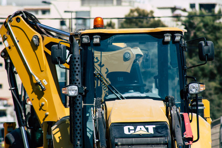 Tel Aviv Israel June 16, 2019 View of construction machinery parked in the streets of Tel Aviv in the afternoon