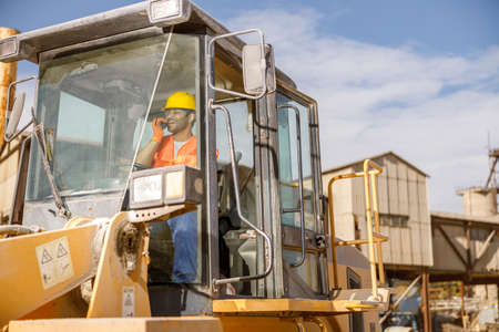 Cape Town, South Africa, June 29 - 2018: Digger truck loading clay in a ceramic tile manufacturing plant.