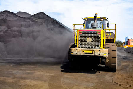 SWINOUJSCIE, WEST POMERANIAN / POLAND - 2020: The wheel loader works on the coal yard