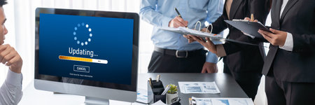 Update software application and hardware upgrade technology concept. installing update process. Software updates or operating system upgrades to keep your device up to date with enhanced functionality in new versions and improved security.