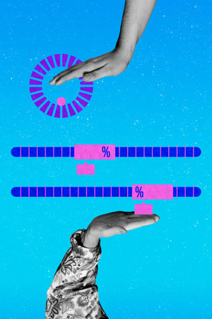 Vertical art banner collage of business people high five gesture partners cooperation ration development percent sign success