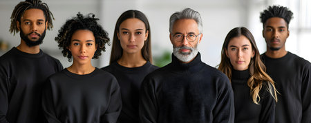 Diverse Models Showcasing a Black Sweater Template on a White Background for Mockup Purposes. Concept Mockup, Black Sweater, Diverse Models, White Background, Fashion Template