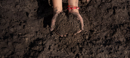 A child holding a small mound of soil, symbolizing connection to nature and environmental awareness, perfect for illustrating sustainability and childhood curiosity