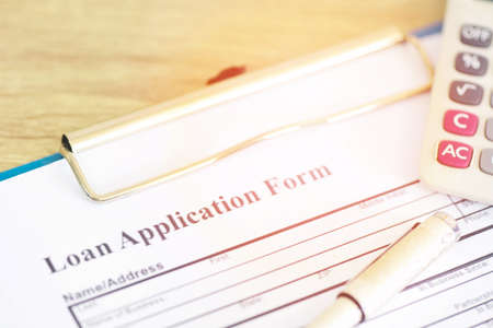 Loan application form, Financial loan money contract agreement company credit or person with a pen filling in information