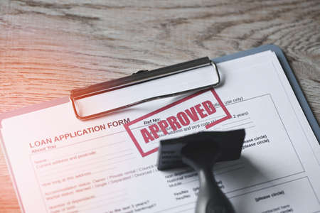Loan approval, Loan application form with Rubber stamping that says Loan Approved, Financial loan money contract agreement company credit or person