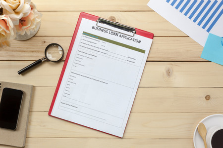 Top view business office the business loan application form,chart,mobile phone on office desk.