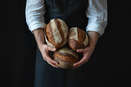 Artisanal Bakery Selection A Flat Lay of Freshly-Baked Bread Loaves on Black Background