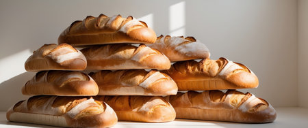 AI Generated. Freshly Baked Bread Loaves Stacked in a Line