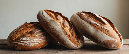 AI Generated. Three loaves of bread are sitting on a wooden table