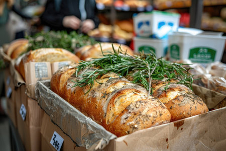 Bread product in market close up photo.
