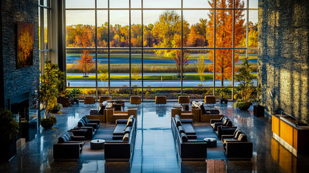 View photo of a modern airport lounge, focused on the luxurious background details.