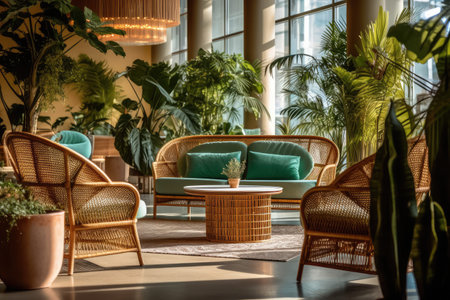 Hotel lobby with boho style furniture profesional photograpy Ai Generated