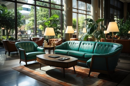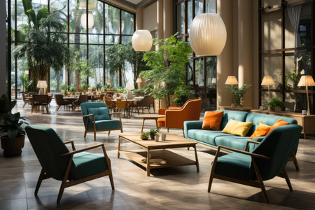 Hotel lobby with Scandinavian style furniture strong AI Generated