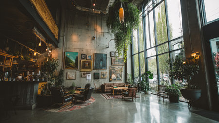 A beautifully designed indoor lounge filled with lush greenery and natural light, ideal for relaxation and socializing in a modern, vibrant atmosphere.